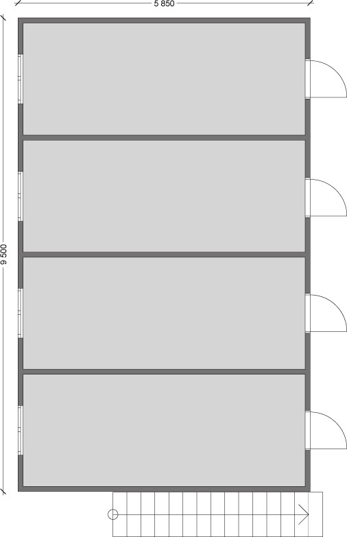 1 пролет, площадка 1000х1000 мм, помост 1000х9600 мм с перилами, пол — просечно-вытяжной стальной лист.